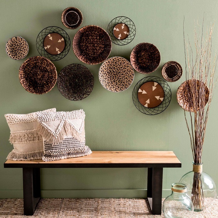 Trang trí và các phụ kiện được sử dụng khác nhau là rất quan trọng cho một không gian bohochic. Trước hết, bạn có thể sử dụng những chậu thực vật, xương rồng được trồng trong giỏ sẽ giúp ích và tạo ra một bầu không khí sống động. Thứ hai, những đồ dệt may theo phong cách boho như chất liệu da, gối dệt, gối lông thú giả và đừng quên đặt một tấm thảm bohochic. Thứ ba, bạn hãy nghĩ đến một số tác phẩm nghệ thuật - được lấy cảm hứng từ thiên nhiên hay gắn một số giỏ vào tường. Điều tuyệt vời về phong cách bohochic là bạn có thể sử dụng các quần áo, mũ, giỏ dệt thông thường để trang trí không gian thậm chí cả máy ảnh cổ điển treo trên tường.