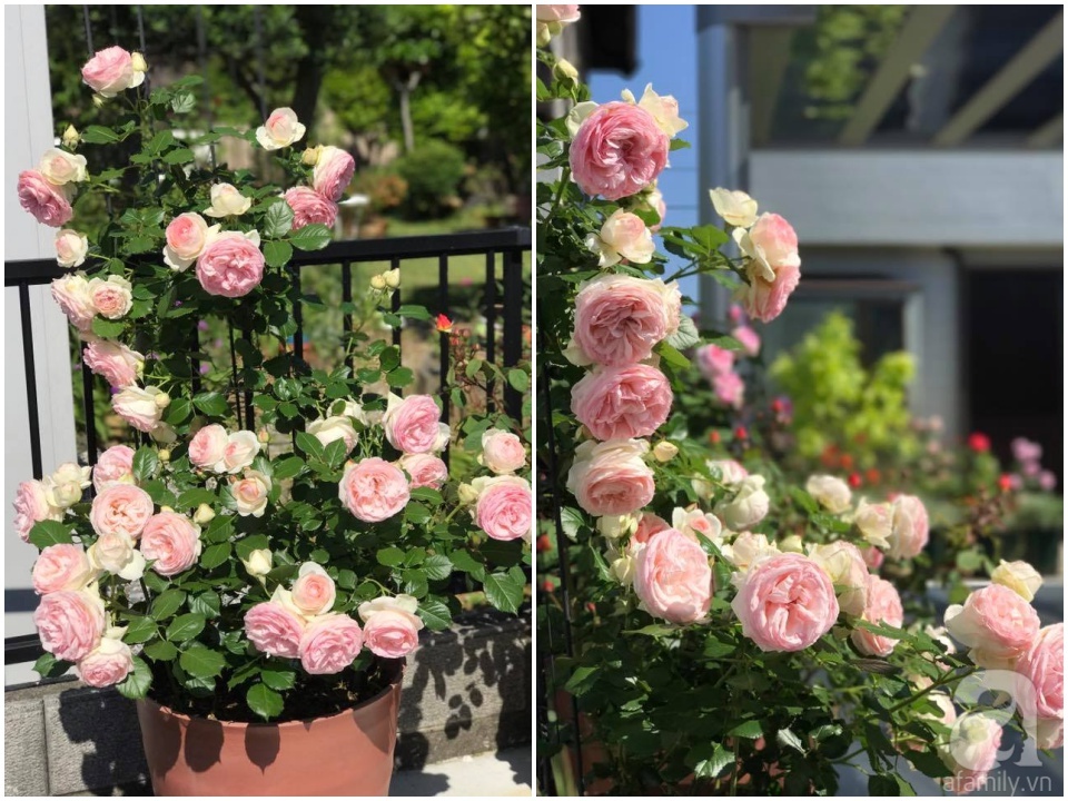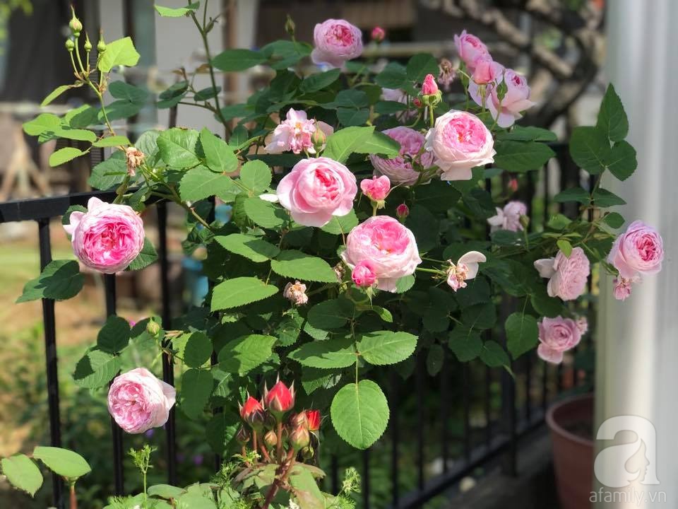 Chị Phương chia sẻ, chị trồng hoa nhiều nhất là ở hàng rào. Hồng cũng được chị chọn giống kỹ lưỡng, từ giống hồng của David Austin đến hồng Nhật. Những loại hồng có form đẹp, độc đáo, mùi hương lạ, thơm nhung nhớ là chị sẽ chọn để trồng cho khoảng ngoại thất trước nhà thêm rực rỡ.