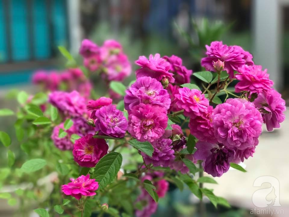 Chỉ với khu vườn nhỏ trước cửa nhà rộng vỏn vẹn 10m², chị Phương đã đặt được hàng trăm chậu hồng, chậu nào cũng nở hoa rực rỡ đẹp như một công viên thu nhỏ.
