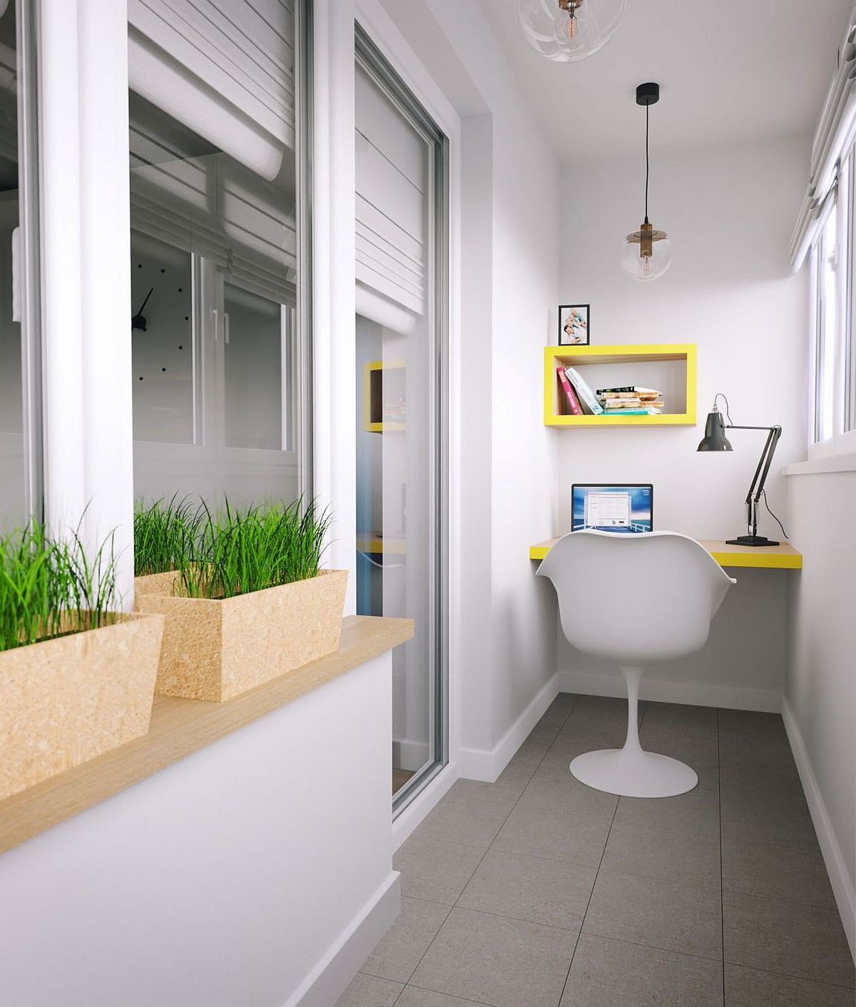 Ngoài ra, ngôi nhà cũng có một hiên dài với diện tích nhỏ nhưng cũng đủ giúp chủ nhân đặt bàn làm việc.
