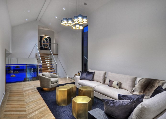 - · Phòng khách gia đình được yêu thích nhờ mẫu bàn trà mạ titan này