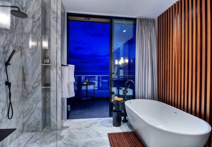 Việc áp dụng kỹ thuật chế tác đồ nội thất bằng gỗ tự nhiên truyền thống giảm thiểu sự cong vênh và biến đổi hình dạng đã giúp cho gia chủ có thể thoải mái sử dụng nội thất gỗ để trang trí trong phòng tắm.