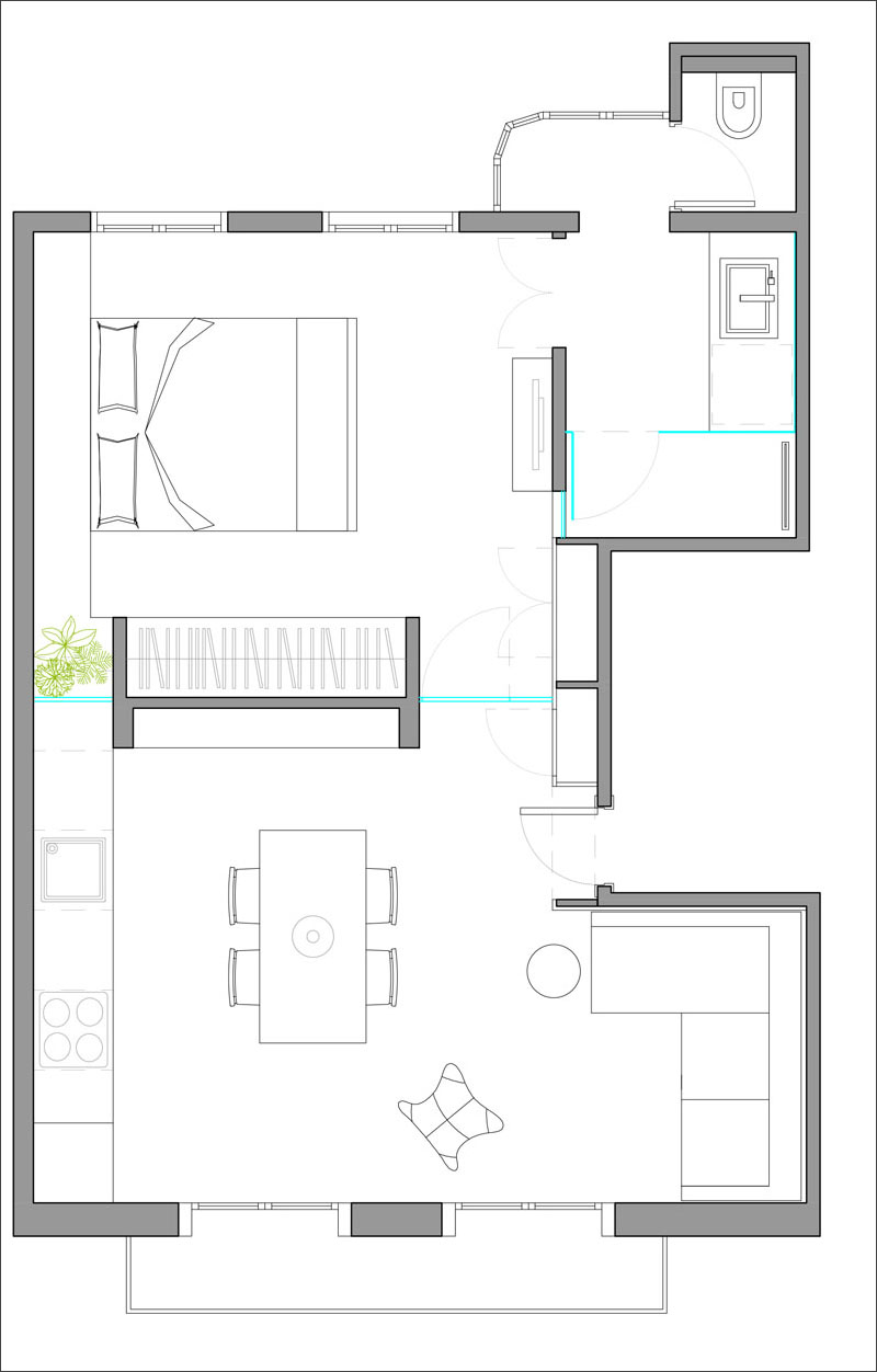 Căn hộ nhỏ chỉ rộng khoảng 30m² nhưng lại khiến bạn ngỡ rằng rộng hơn nhiều. Căn hộ mang đến một không gian sống với sự kết hợp giữa nét hiện đại với sự mộc mạc đầy cuốn hút. Đó cũng chính là lý do bạn có thể trông thấy những mảng tường gạch thô kết hợp với gạch lát nền họa tiết bên trong căn hộ nhỏ này.