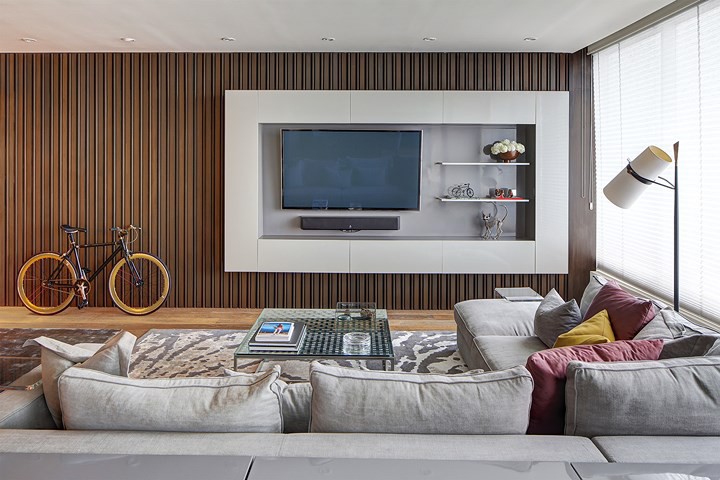 Ở ngôi nhà này hầu như bạn sẽ không thấy bất kỳ một chiếc kệ tivi nào, chỉ đơn giản là chiếc tivi được gắn trực tiếp vào tường kết hợp với phần hộc tường đựng đồ nhưng đôi khi vẻ đẹp lại đến từ những điều đơn giản nhất.